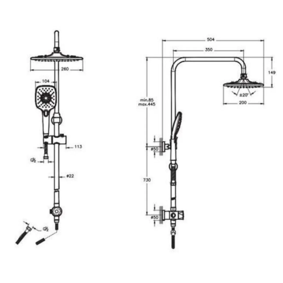 Ayarlanabilir yükseklik özelliğine sahip tepe duşu, farklı kullanıcı ihtiyaçlarına kolayca uyum sağlar. El duşunda bulunan üç farklı akış modu sayesinde rahatlatıcı veya güçlü su akışı seçenekleri sunar. Günlük kullanımda pratiklik ve konfor sağlayan bu set, sıva altı işlem gerektirmeden kolay montaj avantajı sunar.